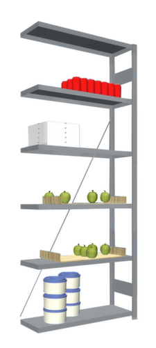 rayonnage suivant avec 2 montants, plateaux conf. à l’offre