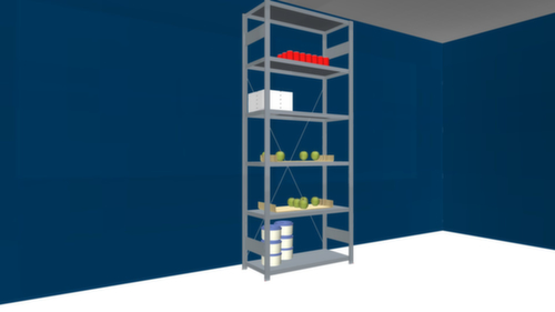 rayonnage de base avec 4 montants, plateaux conf. à l’offre