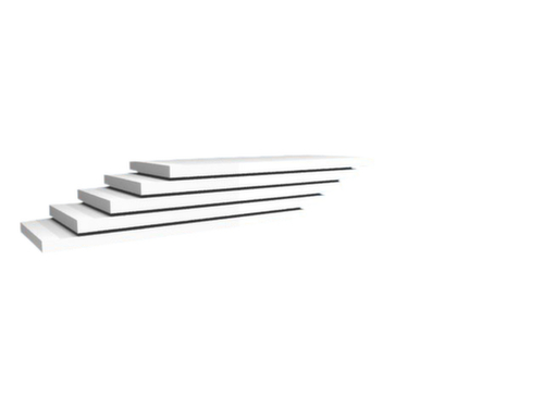 les principales dimensions du hofe de la hofe tablette du rayonnage de stockage en un coup d’œil :3 pliages de sécurité de 40 mm de hauteur et avec des coins pleins garantissent un degré élevé de stabilité et de protection contre les blessures. structure en acier, niveaux galvanisé avec revêtement en plastique en RAL7035 gris clair.