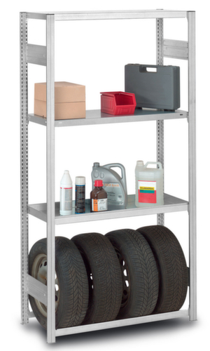 "metaDescription": "hofe rayonnage multifonctionnel - rayonnage suivant, HxlxP 2000x1000x400mm, p. Ø de pneus 578-600mm, de 3tablettes, 1traverse, bilatéral",
