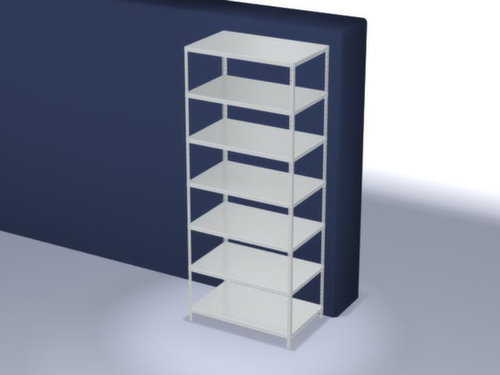 les principales dimensions du hofe rayonnage de stockage en un coup d’œil :7 niveaux avec tablette en acier. 3 pliages de sécurité de 40 mm de hauteur et avec des coins pleins garantissent un degré élevé de stabilité et de protection contre les blessures. hauteurs de compartiments réglables par pas de 25 mm selon l’usage prévu et vos besoins. utilisation unilatéral - conçu pour un montage mural. structure en acier, montants galvanisé avec revêtement en plastique en RAL7035 gris clair, niveaux galvanisé avec revêtement en plastique en RAL7035 gris clair.