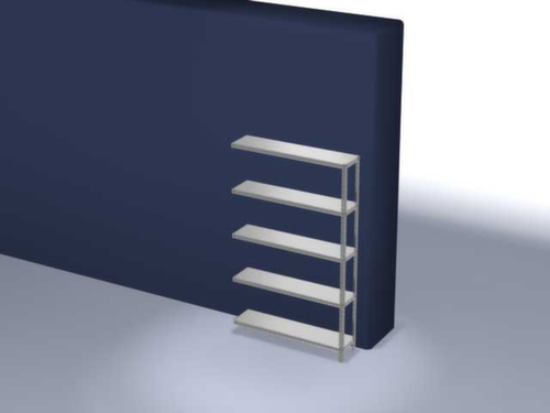 les principales dimensions du hofe rayonnage de stockage en un coup d’œil :5 niveaux avec tablette en acier. 3 pliages de sécurité de 40 mm de hauteur et avec des coins pleins garantissent un degré élevé de stabilité et de protection contre les blessures. hauteurs de compartiments réglables par pas de 25 mm selon l’usage prévu et vos besoins. utilisation unilatéral - conçu pour un montage mural. structure en acier, montants avec revêtement en zinc anti-corrosion, niveaux avec revêtement en zinc anti-corrosion.