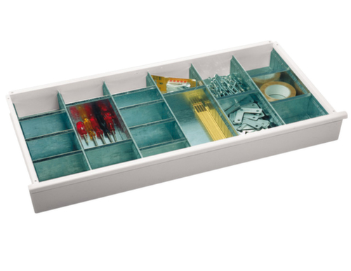 "longDescription": "<h2>Extension de l'étagère</h2><strong>Insert de tiroir</strong><br><ul><li>Pour les tiroirs simples ou les ensembles de tiroirs</li><li>Insert pour plateau en tôle avec 6 plateaux en tôle de 145 mm de large chacun et 12 panneaux enfichables réglables, galvanisé</li></ul>",
