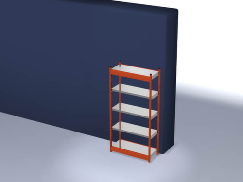 les principales dimensions du hofe rayonnage de stockage en un coup d’œil :5 niveaux avec tablette en acier. niveaux avec pliage de sécurité comme protection contre les blessures. 3 pliages de sécurité de 40 mm de hauteur garantissent un degré élevé de stabilité et de protection contre les blessures. hauteurs de compartiments réglables par pas de 50 mm selon l’usage prévu et vos besoins. angle d'installation droit. utilisation bilatéral - possibilité d’installation flexible librement dans la pièce. Stabilité élevée grâce aux traverses longitudinales. structure en acier, montants avec revêtement en plastique résistant à l’usure en RAL2004 orangé pur, niveaux avec revêtement en zinc anti-corrosion.