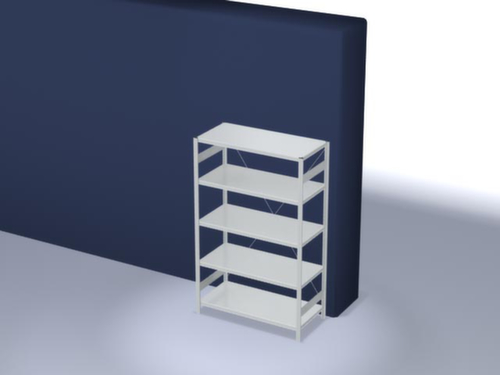 les principales dimensions du hofe rayonnage de stockage en un coup d’œil :5 niveaux avec tablette en acier. 3 pliages de sécurité de 40 mm de hauteur et avec des coins pleins garantissent un degré élevé de stabilité et de protection contre les blessures. hauteurs de compartiments réglables par pas de 25 mm selon l’usage prévu et vos besoins. angle d'installation droit. utilisation unilatéral - conçu pour un montage mural. Stabilité élevée grâce aux croisillons. Les tôles de liaison en profondeur et les embases en acier confèrent une excellente stabilité au rayonnage. Les caches profilés supérieurs assurent une finition soignée. structure en acier, montants galvanisé avec revêtement en plastique en RAL7035 gris clair, niveaux galvanisé avec revêtement en plastique en RAL7035 gris clair.
