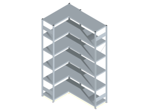 les principales dimensions du hofe rayonnage de stockage en un coup d’œil :6 niveaux avec tablette en acier. 3 pliages de sécurité de 40 mm de hauteur et avec des coins pleins garantissent un degré élevé de stabilité et de protection contre les blessures. hauteurs de compartiments réglables par pas de 25 mm selon l’usage prévu et vos besoins. angle d'installation à gauche et à droite. utilisation unilatéral - conçu pour un montage mural. Stabilité élevée grâce aux croisillons. Les tôles de liaison en profondeur et les embases en acier confèrent une excellente stabilité au rayonnage. Les caches profilés supérieurs assurent une finition soignée. structure en acier, montants avec revêtement en zinc anti-corrosion, niveaux avec revêtement en zinc anti-corrosion.