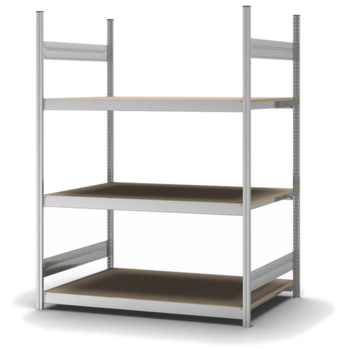 rayonnage départ. système emboîtable ORION PLUS – montage rapide ; toutes les tablettes peuvent être utilisées sans outil, de manière variable et à tout moment.