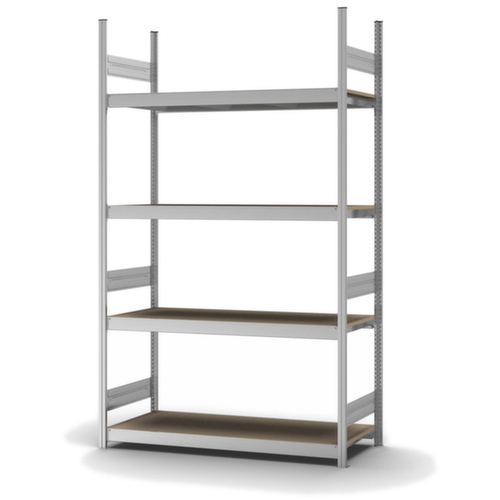 rayonnage départ. système emboîtable ORION PLUS – montage rapide ; toutes les tablettes peuvent être utilisées sans outil, de manière variable et à tout moment.