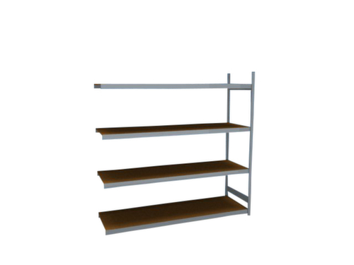 Les principales dimensions du hofe rayonnage grande largeur en un coup d’œil :4 niveaux avec sol en bois. niveaux avec renfort par poutres. hauteurs de compartiments réglables par pas de 25 mm selon l’usage prévu et vos besoins. utilisation unilatéral - conçu pour un montage mural. Les tôles de liaison en profondeur et les embases en acier confèrent une excellente stabilité au rayonnage. Les caches profilés supérieurs assurent une finition soignée. structure en acier, montants avec revêtement en zinc anti-corrosion, traverses avec revêtement en zinc anti-corrosion.