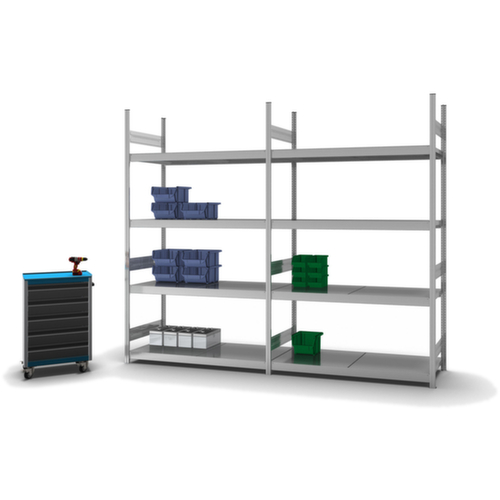 rayonnage suivant. système emboîtable - pour montage simple et sans outils. convient pour pour marchandises encombrantes.