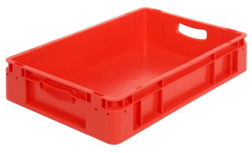 dimensions adaptées aux palettes européennes. en polypropylène incassable en rouge. Parois plein, fond plein. Fond avec renfort grâce à des rainures de renfort. transport facile grâce à poignées. avec porte-étiquettes pour une inscription individuelle et claire. facilement empilable avec rebord gerbable gerbable Plusieurs niveaux en toute sécurité. convient pour aliments. Adapté aux convoyeurs à rouleaux. Résistant à la température -40 °C à +90 °C. Convient pour différents tissus, nous consulter.