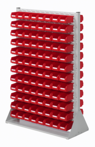 utilisation bilatéral - possibilité d’installation flexible librement dans la pièce. paroi arrière avec plaque à fentes pour accrocher et décrocher les bacs à l’horizontale. structure en acier. montants avec revêtement en plastique résistant à l’usure en RAL7035 gris clair.