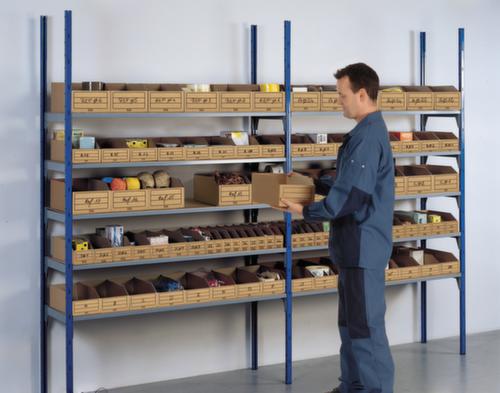 "longDescription": "<h2>Bac compartimentable en carton pliable</h2><strong>Stockage écologique et peu encombrant</strong><br><ul><li>Idéal pour le stockage de petites pièces non grasses</li><li>Boîte en carton à 1 paroi avec couverture extérieure solide en papier kraft</li><li><strong>Respectueux de l'environnement</strong> - fabriqué à partir de papier recyclé à au moins 75 %.</li><li>Rangement peu encombrant, se replie en un clin d'œil en cas de besoin.</li><li><strong>Vue directe sur l'intérieur et</strong> démontage facile grâce à une hauteur frontale plus faible </li></ul><strong>Achat uniquement en unités de conditionnement complètes (UC)</strong><br>",