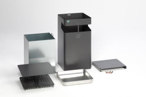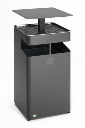"metaDescription": "Cendrier poubelle avec toit, fer micacé - HxlxP 920x450x450mm, poubelle capacité 72l, corps acier fer micacé, a. toit protec.",