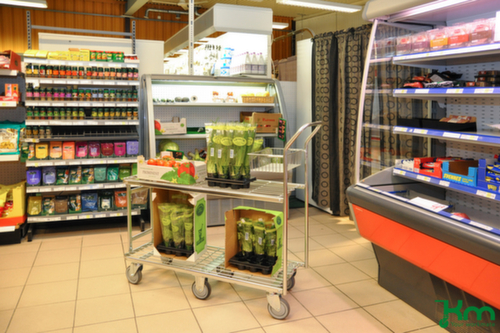 structure en acier. plateforme plateau ajouré. barre de poussée avec panier pour la collecte et le transport spécial de petits objets. châssis à galvanisation électrolytique. Facile à déplacer grâce au châssis roulant robuste avec 4 roulettes pivotantes et 2 roulettes fixes, Les freins situés sur deux roulettes pivotantes offrent la stabilité souhaitée à tout moment. Ø de roue 125 mm. roues avec bandage TPE préservant le sol. moyeu avec palier de pivotement. Permet une rotation à 360°.Notre équipe du service clientèle se tient à votre disposition.