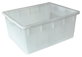en polyéthylène résistant aux chocs, en blanc nature. parois plein. fond plein. équipé de avec rebord robuste. transport facile grâce à poignées. empilable pour gain de place. convient pour aliments. résistant à la température de -4 °C à +40 °C.