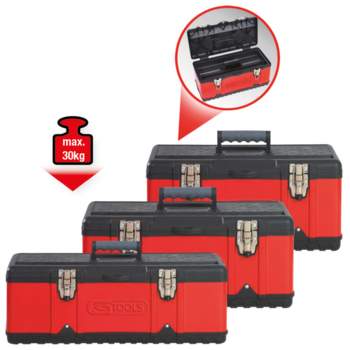 "metaDescription": "KS Tools Ensemble de boîtes à outils en tôle d'acier plastique - 3pièces.",