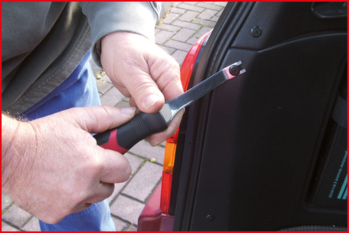 "longDescription": "Peut être utilisé universellement grâce aux différentes lames, convient pour desserrer les garnitures, les lambris, les capuchons de protection etc., lames biseautées, avec trou de suspension, avec poignée à 2 composants, acier inoxydable<br>",