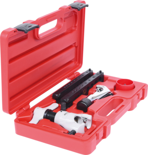 "longDescription": "pour la réalisation de brides simples à 45° sur des tubes en cuivre, matrice autocentrée, carré d'entraînement 3/8\" dans la vis à ailettes pour utilisation avec un cliquet, dans une mallette en plastique robuste<br>",