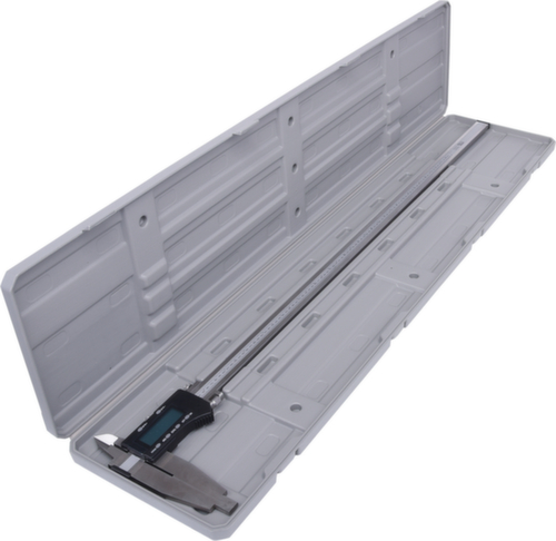 "longDescription": "selon DIN 862, avec vis de blocage, pour mesures extérieures et intérieures, changement mm/pouces, remise à zéro possible dans n'importe quelle position, avec pointes de lame, avec réglage fin, grand écran LCD - hauteur des chiffres 6,0 mm, avec arrêt automatique, entièrement trempé et usiné avec précision, acier inoxydable, dans un coffret plastique robuste<br>",