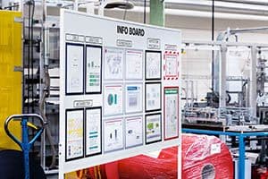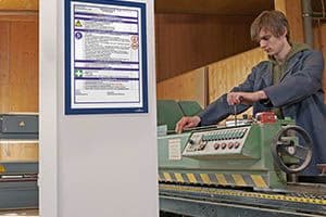 Les avertissements et annonces importants sont affichés en toute sécurité dans le cadre d'information DURAFRAME. Le document reste protégé contre la poussière et l'humidité et est immédiatement perceptible grâce à la coloration individuelle du cadre.