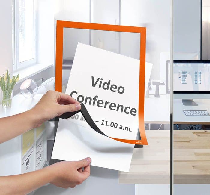 Le montage sans outil sur diverses surfaces garantit une utilisation rapide dans toute l'entreprise, que ce soit dans l'administration, la production ou la logistique, sur du verre, des surfaces métalliques, des murs en papier peint ou en textile. Le cadre d'information DURAFRAME offre toujours la bonne solution.