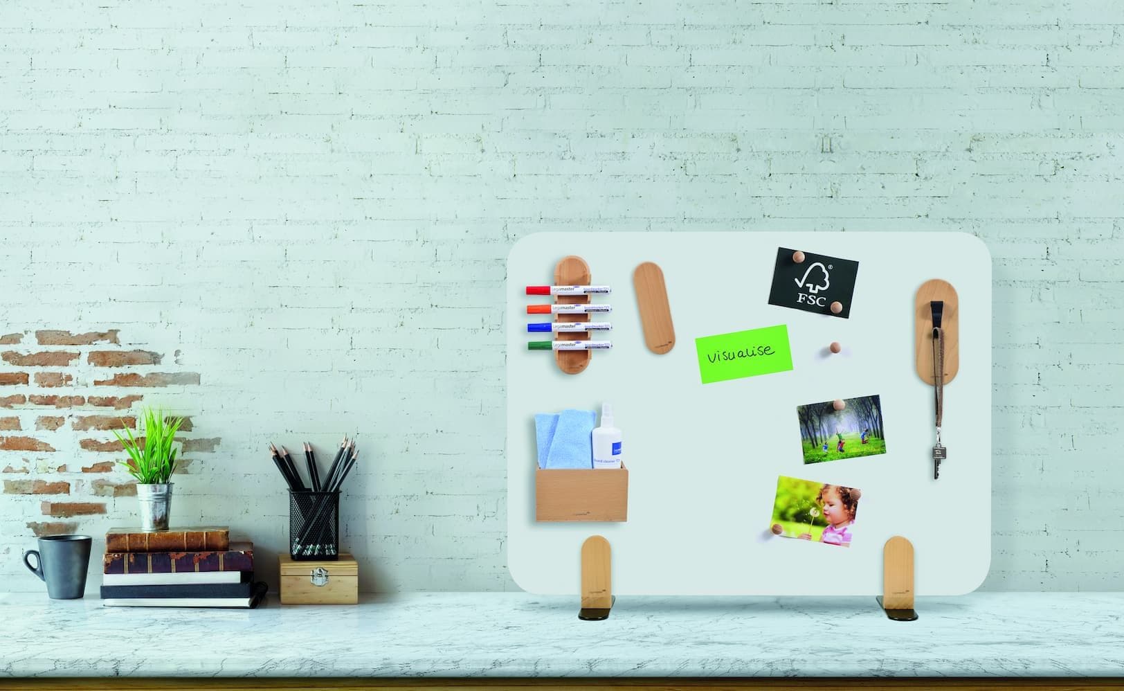 En matière de durabilité, chaque détail compte. C'est pourquoi Legamaster a développé WOODEN, une gamme d'accessoires en bois durables pour les tableaux blancs, les tableaux de verre et les tableaux d'affichage, où tous les composants en bois proviennent de forêts durables et sont certifiés FSC.