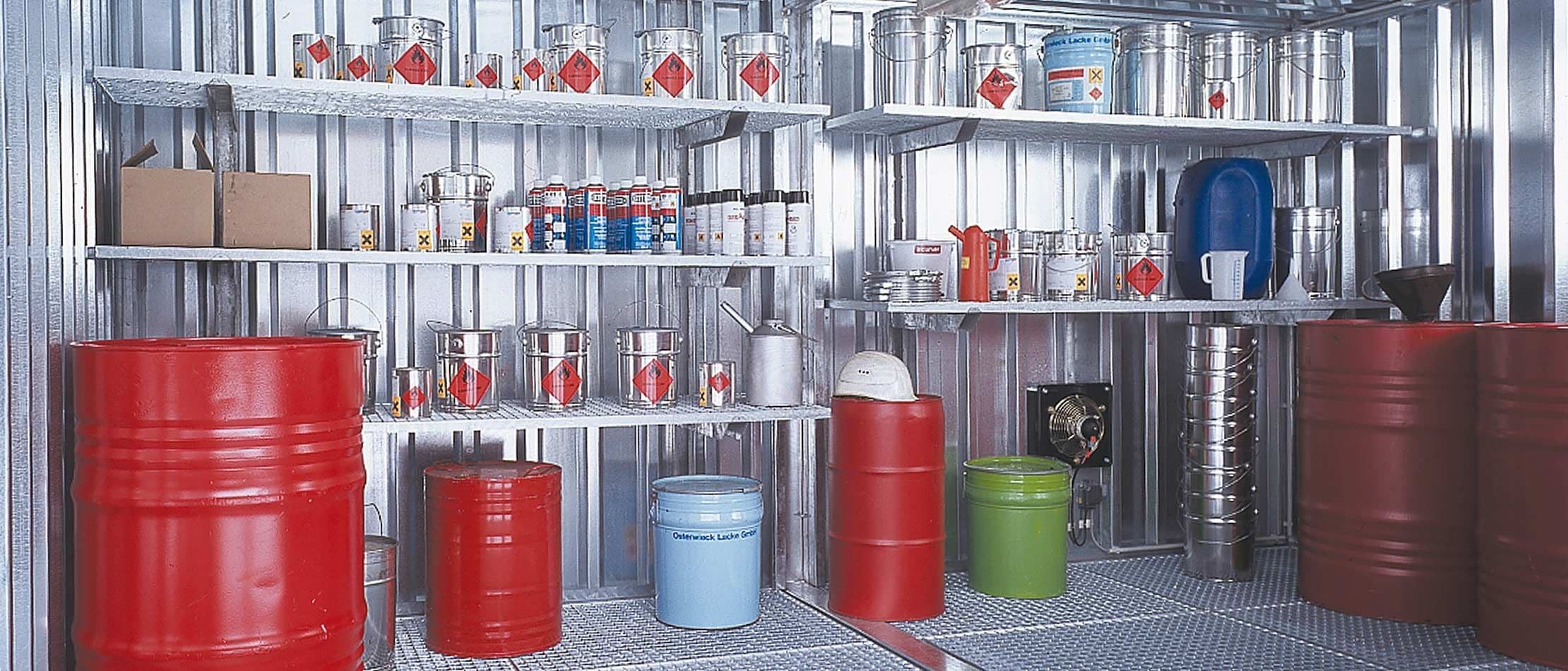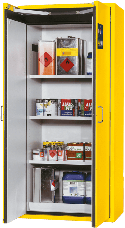 Nous vous aiderons à mettre en place un stockage correct et conforme à la législation pour vos substances dangereuses. En fonction du type de produit, de la classification de la substance dangereuse, de l'étiquetage et du lieu de stockage, nous vous conseillerons sur ce dont vous avez besoin parmi notre vaste gamme, et nous vous fournirons également un certificat d'essai ou un agrément sur demande.