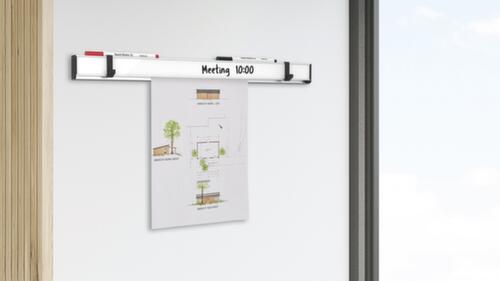 "longDescription": "<h2>Baguette de serrage multifonction MAULtalent</h2><strong>réunit 4 fonctions en un seul endroit</strong><br><ul><li><strong>Utilisation universelle</strong> au bureau, dans l'atelier, dans les couloirs ou en cuisine</li><li><strong>Baguette de serrage</strong> il suffit de glisser le papier par le bas, maintien automatique par les galets en plastique</li><li><strong>Tableau blanc</strong> - face avant magnétique, inscriptible et effaçable à sec</li><li><strong>Suspension</strong> - 2 crochets coulissants, p. ex. pour les blousons légers, les clés ou le papier pour chevalets de conférence</li><li><strong>Surface de dépose</strong> - partie supérieure rainurée pour poser les stylos, cartes, photos ou notes</li></ul> - <strong>Avec fonction de compensation en hauteur facilitant l'ajustage</strong> - adaptateur de rallonge et matériel de montage inclus<br>",