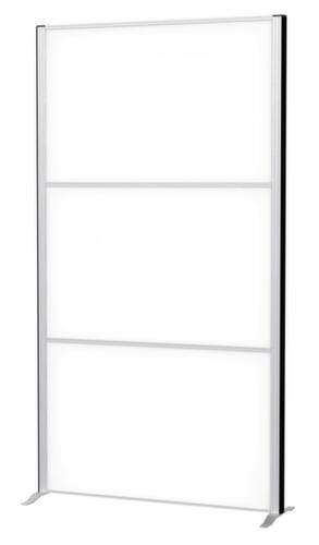 à poser au sol. paroi en tôle d'acier coloris blanc. surface magnétique, inscriptible et effaçable à sec pour une utilisation récurrente. Le tableau peut être utilisé sans papier séparé, vous évitant ainsi des frais. cadre en aluminium en argent. soubassement avec pied avec fonction de nivellement pour compenser les inégalités du sol. Extensible à tout moment : Il est possible de juxtaposer sans interruption plusieurs cloisons démontables grâce au système à boucles et crochets.