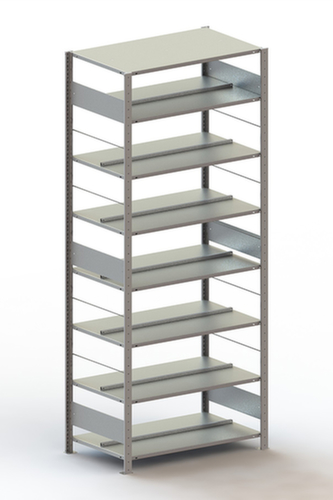 rayonnage de base avec 2 échelles, 1 bac de rétention et plateaux conf. à l’offre