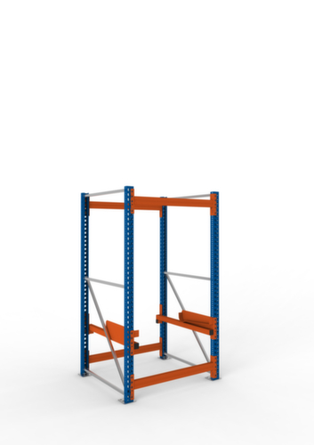 Les principales dimensions du META rayonnage pour tambours de câbles MULTIPAL en un coup d’œil :2 niveaux avec surface d’appui tambour de câble. niveaux avec rails sur les lisses pour introduire l’axe du tambour. Stabilité élevée grâce aux entretoises diagonales et horizontales. structure en acier, montants avec revêtement en plastique résistant à l’usure en RAL5010 bleu gentiane, niveaux avec revêtement en plastique résistant à l’usure en RAL2001 orangé rouge.