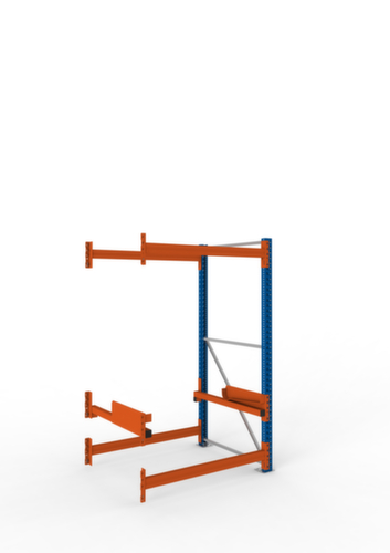 Les principales dimensions du META rayonnage pour tambours de câbles MULTIPAL en un coup d’œil :2 niveaux avec surface d’appui tambour de câble. niveaux avec rails sur les lisses pour introduire l’axe du tambour. Stabilité élevée grâce aux entretoises diagonales et horizontales. structure en acier, montants avec revêtement en plastique résistant à l’usure en RAL5010 bleu gentiane, niveaux avec revêtement en plastique résistant à l’usure en RAL2001 orangé rouge.