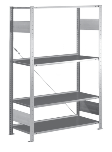 rayonnage de base avec 2 échelles, croisillons et plateaux conf. à l’offre