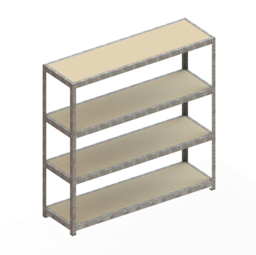 rayonnage de base avec 4 montants avec pieds emboîtables et plateaux conf. à l’offre