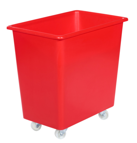 en polyéthylène résistant aux chocs en rouge. La marchandise se stocke à l’abri de la poussière grâce aux parois fermées et le récipient se nettoie facilement. fond plein. Les roulettes intégrées facilitent le transport. empilable pour gain de place. convient pour aliments. résistant à la température de -40 à +80 °C.