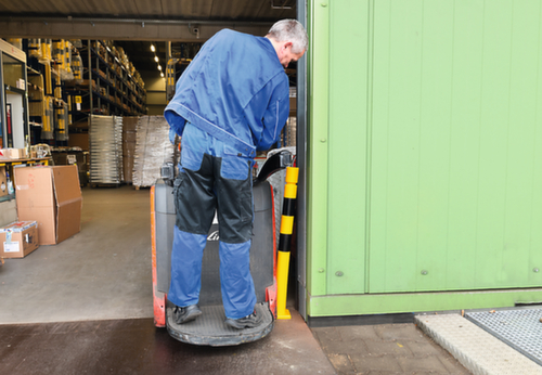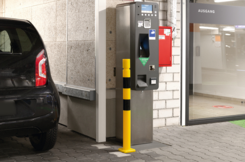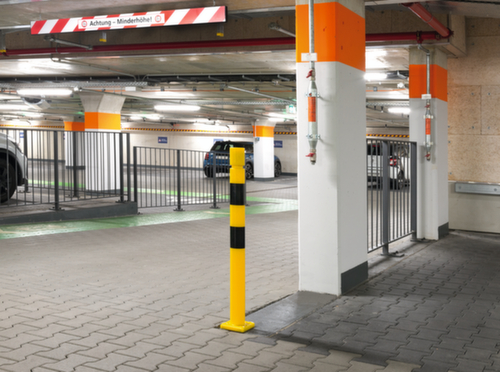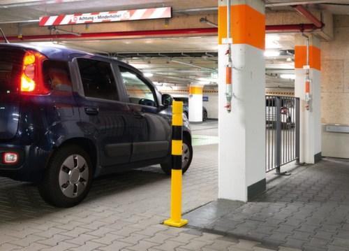 Convient particulièrement pour les espaces de circulation restreints comme les parkings à étages. Sa forme classique confère à la protection anti-collision l'aspect d'un poteau en acier. Il reste toutefois flexible et absorbe les forces de collision. Il protège ainsi non seulement l'infrastructure, mais aussi les véhicules et le poteau même.