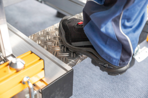 Les principales dimensions de MUNK l’échafaudage Desk-Surfer en un coup d’œil :application sûre grâce à rambarde sur 3 côtés. équipé de bande sécurité pour combler les espaces dans la rambarde pour une protection intégrale. châssis à hauteur réglable grâce à l'élément d'emboîtement optionnel. avec 4 roulettes pivotantes facilitant la manœuvre. Pour une utilisation stationnaire, les roulettes sont équipées de freins. Ø de roue 125 mm. utilisation à un côté. structure de la mezzanine modulaire en aluminium avec finition époxy résistante aux chocs et aux rayures. aluminiuméchafaudage avec finition époxy résistante aux chocs et aux rayures coloris argent. force mezzanine modulaire jusqu’à 150 kg. rehausse rapide et sans outil grâce aux articulations à encliquetage et à un système d'emboîtement. Produit livré démonté – montage facile.