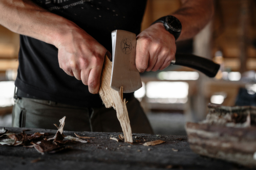 "longDescription": "Compagnon pratique pour le camping et les loisirs, Idéal également pour fendre de petites bûches (bois d'allumage), L'arrière de la tête de la hache peut être utilisé pour enfoncer des piquets de tente par exemple, La tête et le manche sont entièrement forgés d'un seul tenant, Extrêmement stable et robuste, Avec poignée en plastique, Emballé dans un étui en cuir avec passant de ceinture pour un transport sûr et confortable<br>",