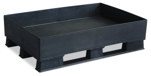 "longDescription": "<h2>Bac à palettes en PE</h2><strong>en format euro-palette</strong><br><ul><li>Convient pour les substances polluantes et corrosives.</li><li>Travail très propre grâce à un corps de baignoire sans soudure.</li><li>Respect de l'environnement et stabilité dimensionnelle - en polyéthylène résistant aux chocs.</li><li>Peut être rétracté de tous les côtés - avec des patins</li><li>Convient pour le transport par chariot élévateur à fourche grâce à une hauteur inférieure pratique.</li></ul><br><h3>Vous avez le choix :</h3><ul><li>Pour un volume de collecte encore plus important, en option avec une grille amovible</li></ul>",