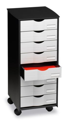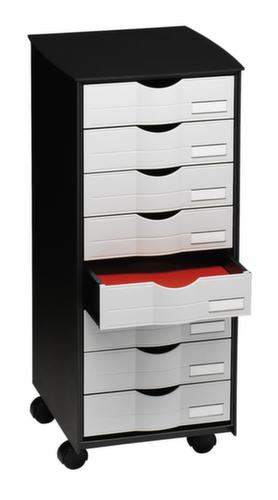 "metaDescription": "Paperflow Chariot à tiroirs roulant, noir - HxlxP 715x316x343mm, 8tiroir(s), corps noir, face avant gris",
