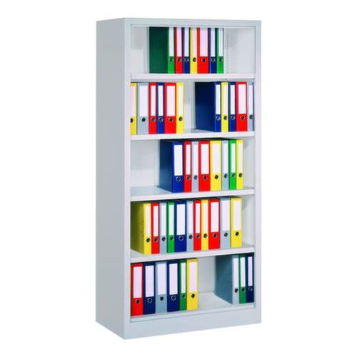 Espace de rangement facilement accessible pour les dossiers et documents de travail sur 5 hauteurs de classeur. 4 niveau(x) avec tablette en acier réglables selon vos besoin par pas de 17 mm. construction en tôle d'acier avec finition époxy résistante aux chocs et aux rayures. niveaux en comme couleur du corps.