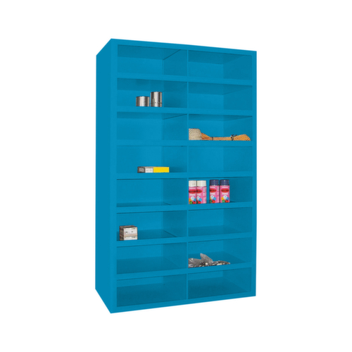 16 compartiments offrent un espace de rangement suffisant pour stocker et trier par ex. des papiers, consommables ou pièces de rechange. 2 compartiments par niveau. compartiments avec rebord antichute (40 mm) et porte-étiquette intégré. construction en tôle d'acier avec finition époxy résistante aux chocs et aux rayures. niveaux avec finition époxy résistante aux chocs et aux rayures.