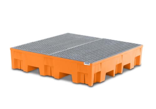 les principales dimensions du du bac de rétention base-line base-line en un coup d’œil :en Polyéthylène, coloris orange. Équipé de avec caillebotis en acier avec revêtement en zinc anti-corrosion. Utilisation mobile. Avec fourreaux pour fourche pour un transport facile. préhension Sur tous les côtés.