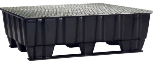 "metaDescription": "Bac de rétention PE pour fûts de 2x200 litres - p. fût 2x200l, vol. rétention 220l, HxlxP 360x1220x820mm, a. caillebotis galvanisé, patins",