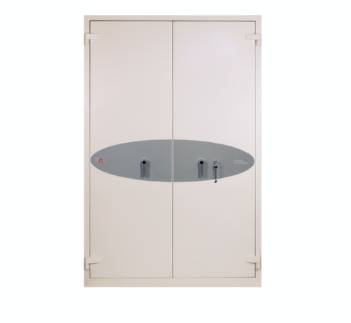 Tablettes à hauteur réglable munies de série de rails standard pour dossiers suspendus. avec double porte battante. verrouillable avec serrure pour clé à double panneton haute sécurité de classe VdS I. structure en acier. corps avec laquage en RAL9003 blanc de sécurité. face avant avec laquage en RAL9003 blanc de sécurité.