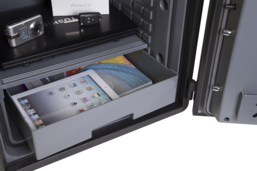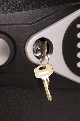 Tablette à hauteur réglable, pochette intérieur de porte, 5 crochets porte-clés et éclairage intérieur à DEL favorisant une bonne visibilité même dans les armoires mal éclairées. avec porte à battants. verrouillable avec serrure électronique avec clavier rétroéclairé, alarme intégrée et déverrouillage d'urgence par 2 clés. verrouillage à l'aide d'un boulon de verrouillage de 25 mm qui renforce la protection contre les tentatives d'effraction. boulons de fermeture Ø 25 mm. Verrouillage automatique de la porte à la fermeture pour une sécurité immédiate. structure en acier. corps avec laquage en noir. face avant avec laquage en noir.