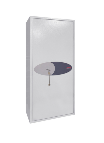 Chiffres et dimensions de l'Phoenix Safe armoire haute sécurité Fortresscorps avec porte battante simple. verrouillable avec serrure pour clé à double panneton haute sécurité. Les plaques antiperçage constituent un dispositif de protection spécial qui empêche le perçage du coffre de sécurité. Les plaques sont insérées de manière à protéger les zones critiques telles que la serrure ou les mécanismes de verrouillage. Elles renforcent la résistance aux attaques mécaniques. S'il y a tentative d'ouverture par la force, le mécanisme de verrouillage d'urgence s'active automatiquement et renforce la sécurité. corps à double paroi. porte à double paroi. structure en acier. corps avec revêtement antirayures en RAL9003 blanc de sécurité. face avant avec revêtement antirayures en RAL9003 blanc de sécurité. couverture d'assurance : jusqu'à 20 000 € pour les particuliers. Préparé pour ancrage de tablette / de panneau arrière.
