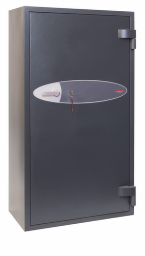 équipement : tablettes. avec porte à battants. verrouillable avec serrure pour clé à double panneton haute sécurité de classe VdS II. verrouillage par des boulons de verrouillage angulaire 3 voies pour une grande robustesse. structure en acier. corps en RAL7024 gris graphite. face avant en RAL7024 gris graphite. Préparé pour ancrage de tablette / de panneau arrière.