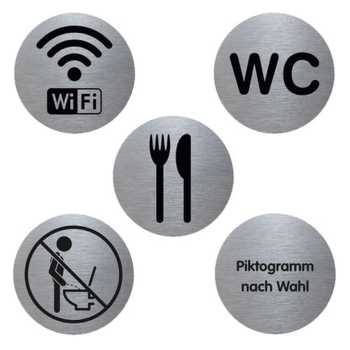 "description": "toilettes, alu, argent/noir, autoadhésif, Ø 70mm",